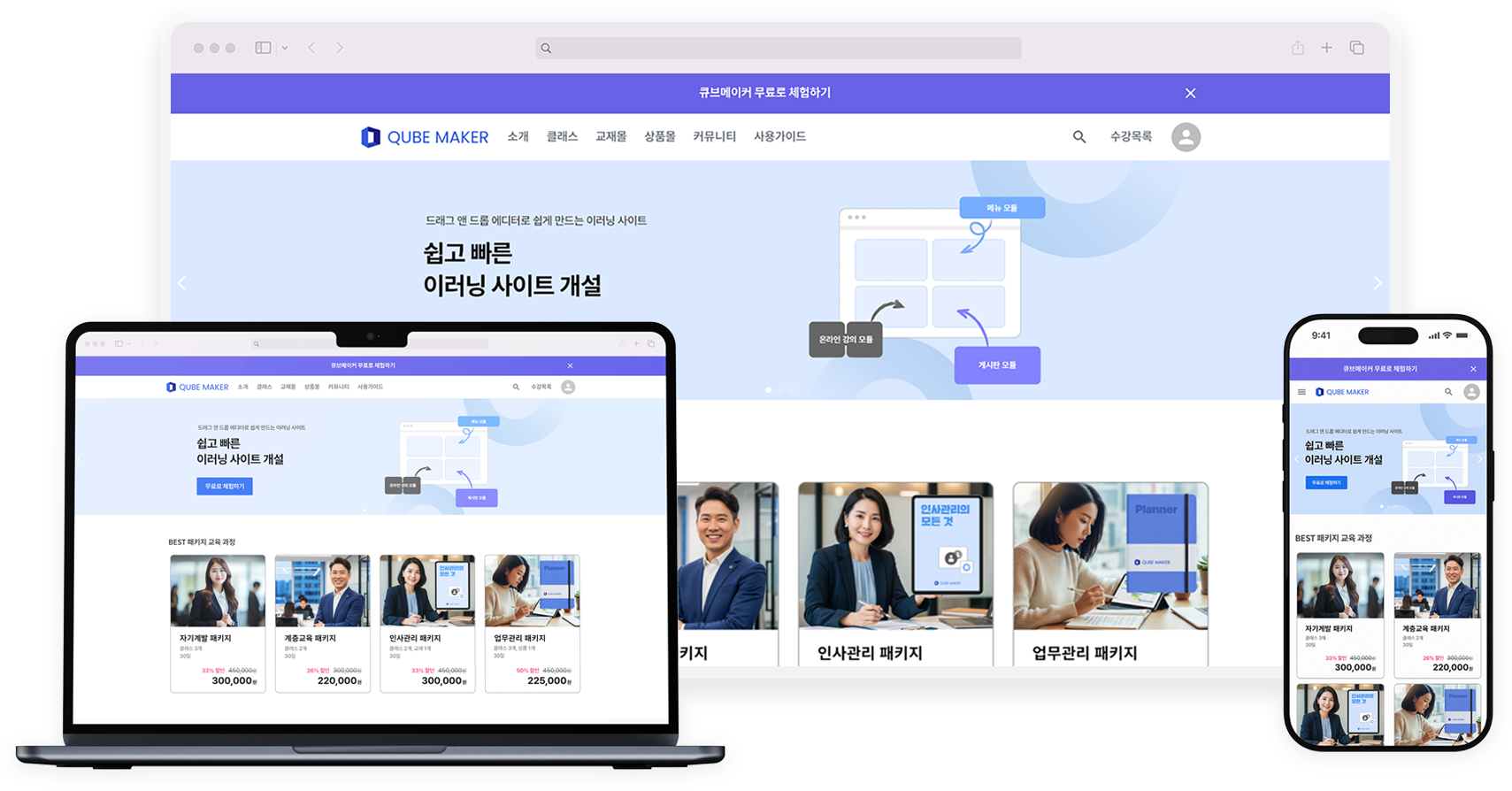 큐브메이커에서는 교육 콘텐츠에 대해 걱정할 필요가 없습니다.